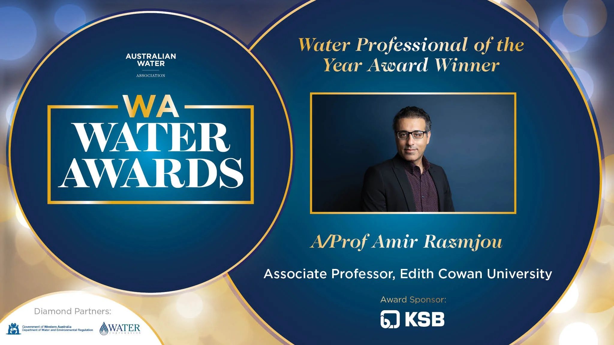 We would like to congratulate Associate Professor Amir Razmjou on wining the prestigious “2025 Water Professional of the Year “at the WA Water Awards Dinner 2025, hosted by the Australian Water Association (AWA).